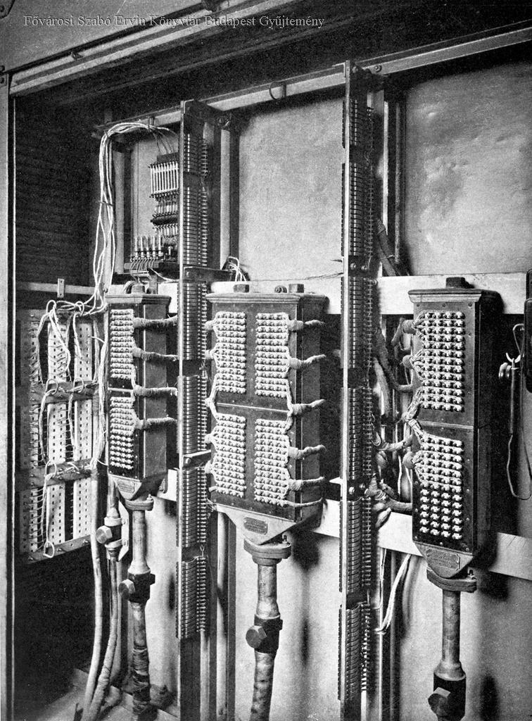 távbeszélőközpont, gép és berendezés, épületkép, belső felvétel, 1908