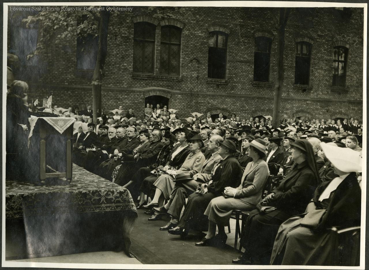 egyházi iskola, római katolikus egyház, vincés irgalmas nővérek, középfokú oktatás, nőképzés, szakképzés, avatás, ünnepség, néptömeg, udvar