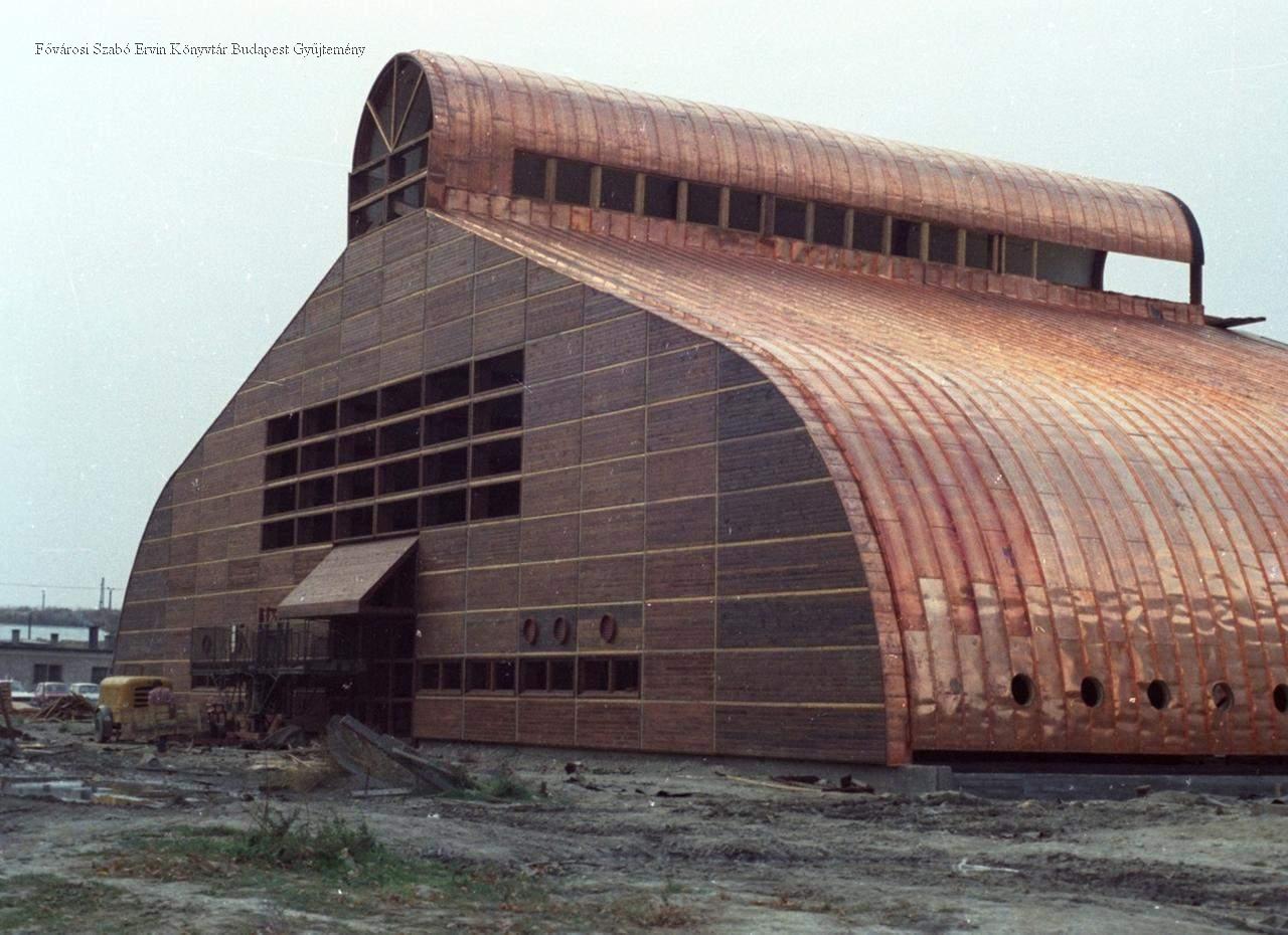 külső felvétel, épületkép, áruház, üzletház, építés, munkagép, 1980-as évek