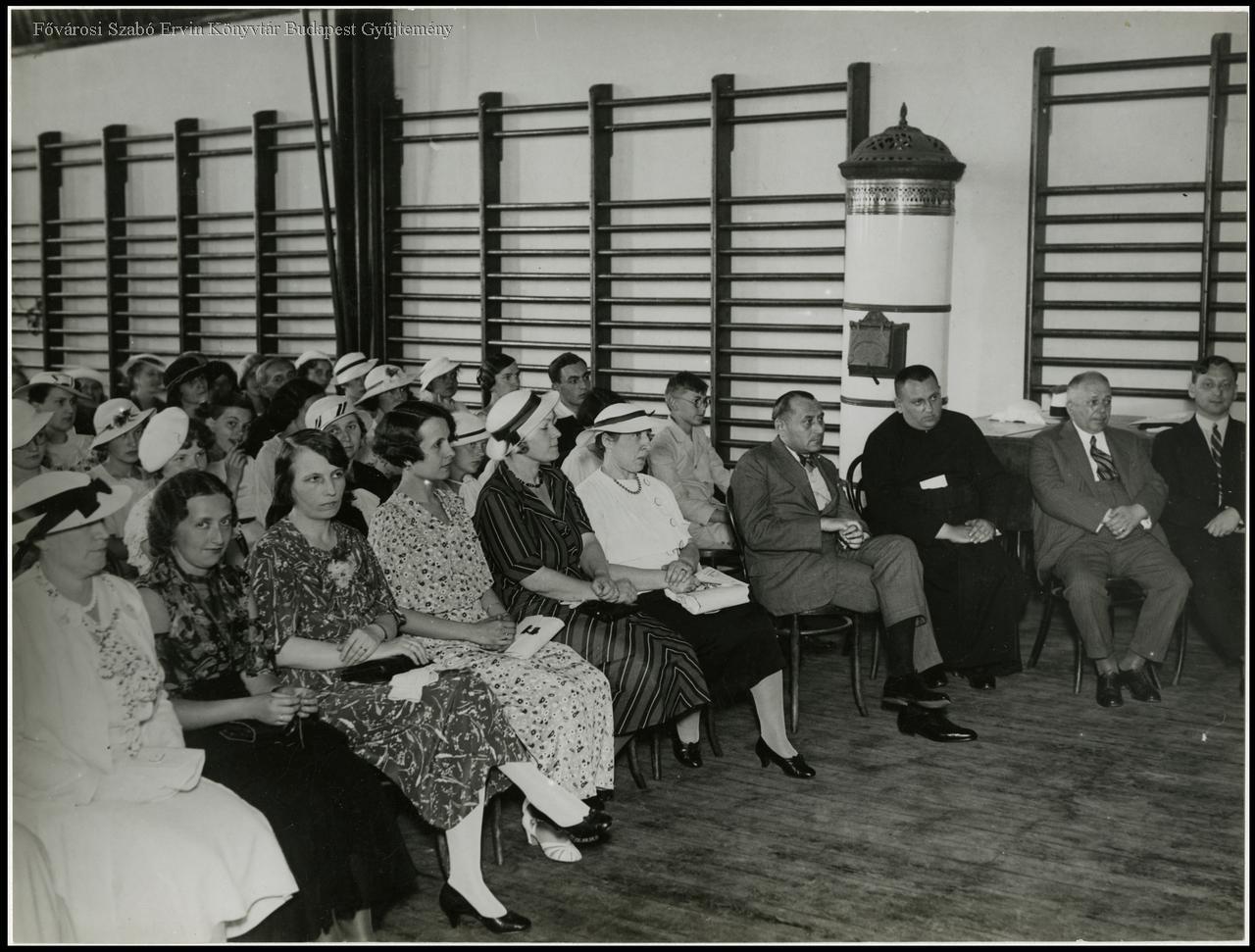 iskola, tornaterem, iskolai osztály, találkozó, tanár-diák kapcsolat, öltözködés, kályha, 1930-as évek