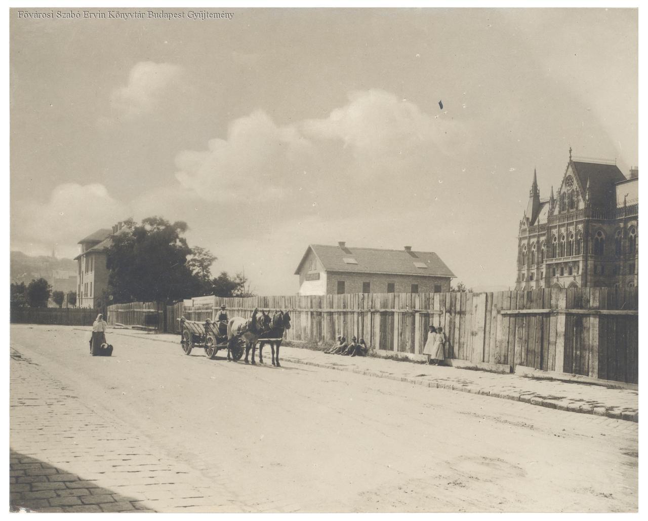 kerítés, lovas kocsi, utcakép, 1900-as évek