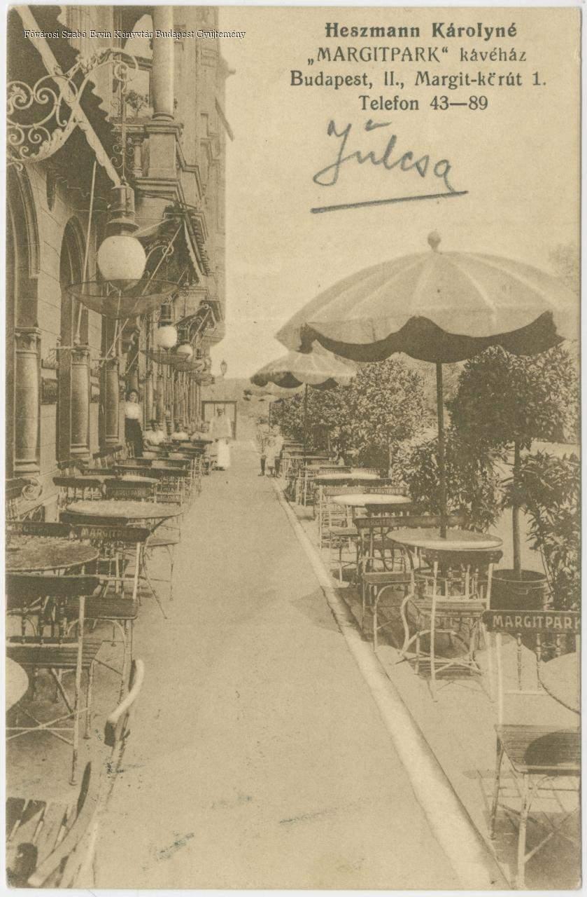 Heszmann Károlyné "Margitpark" kávéház Budapest, II., Margit-körút 1. : levelező-lap