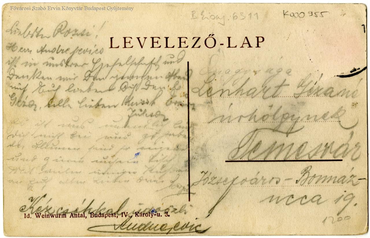 Id. Weinwurm Antal Budapest, IV. Károly u. 3.