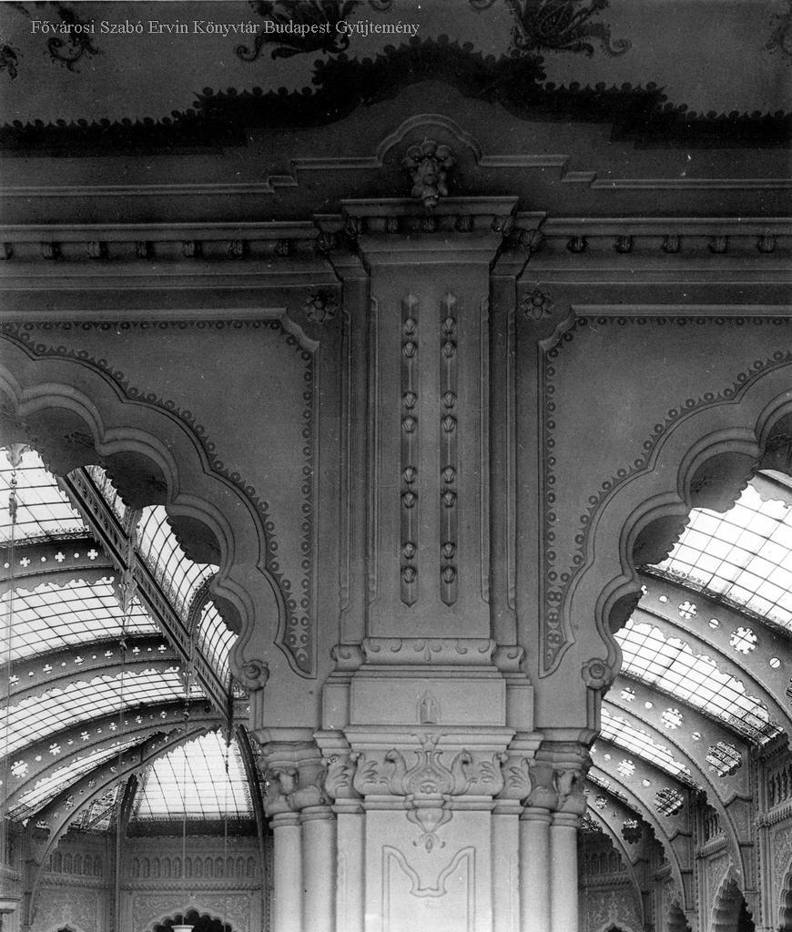 Kupola belső részlete festett üveg- és vasművészeti diszítéssel