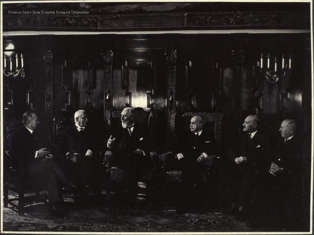 [Csoportkép az Országházban, a képviselőház elnökének fogadótermében]