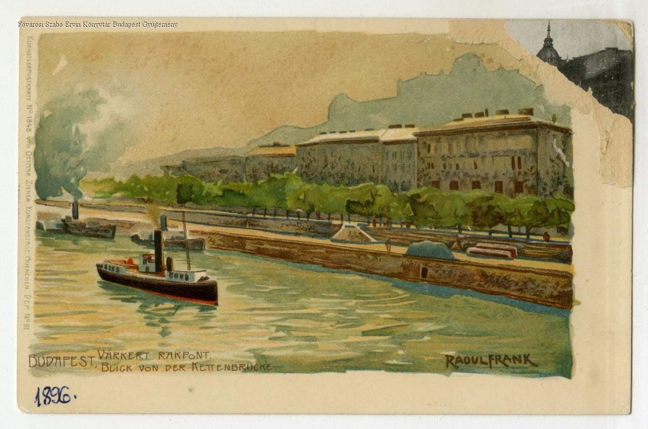 Raoul Frank, osztrák tájképfestő avkarellje a Margit alatti budai rakpartról
