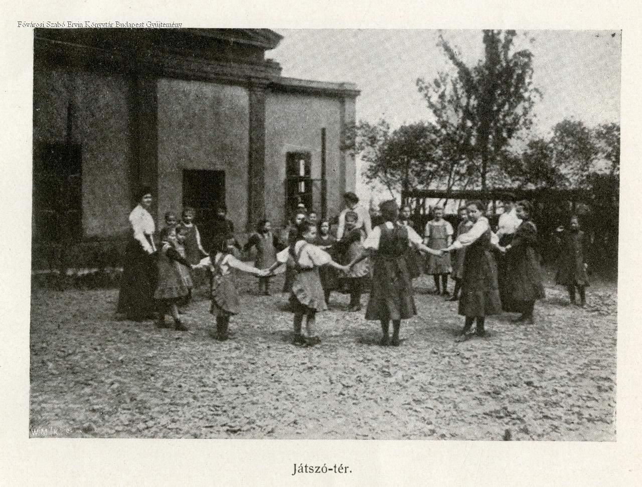középfokú oktatás, magániskola, alapítványi iskola, református, lány, nevelőintézet, lépcső, kert, udvar, játék, körjáték, játszótér, külső felvétel, 1908