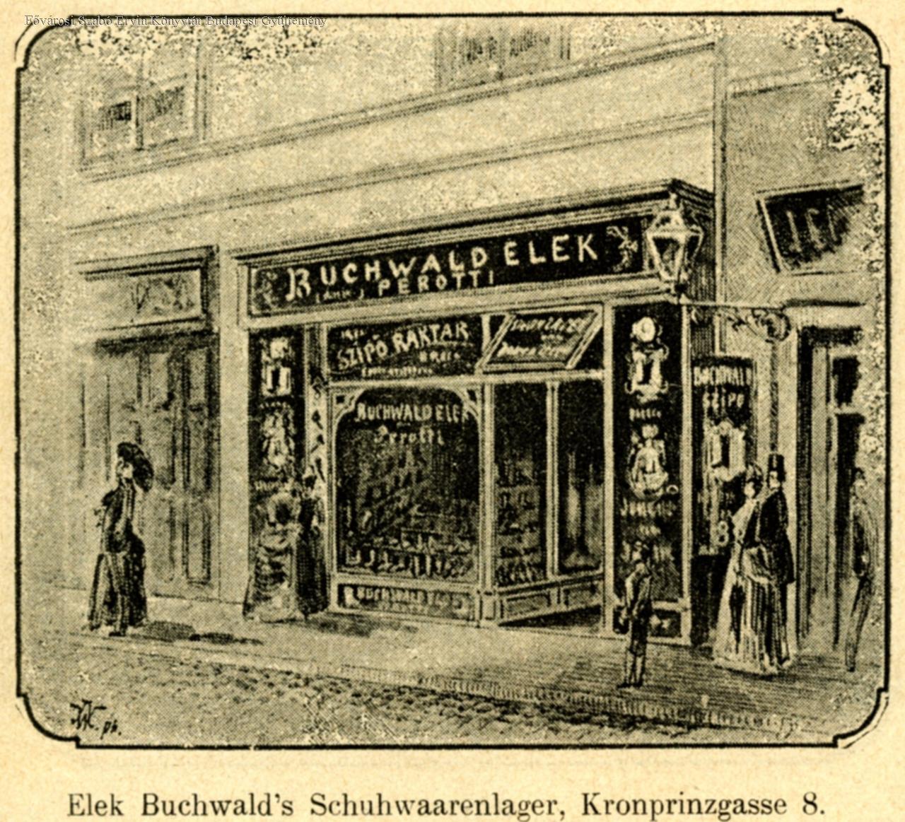 Elek Buchwald's Schuhwarenlager, Kronprinzgasse 8. [Buchwald Elek cipőraktára] /
