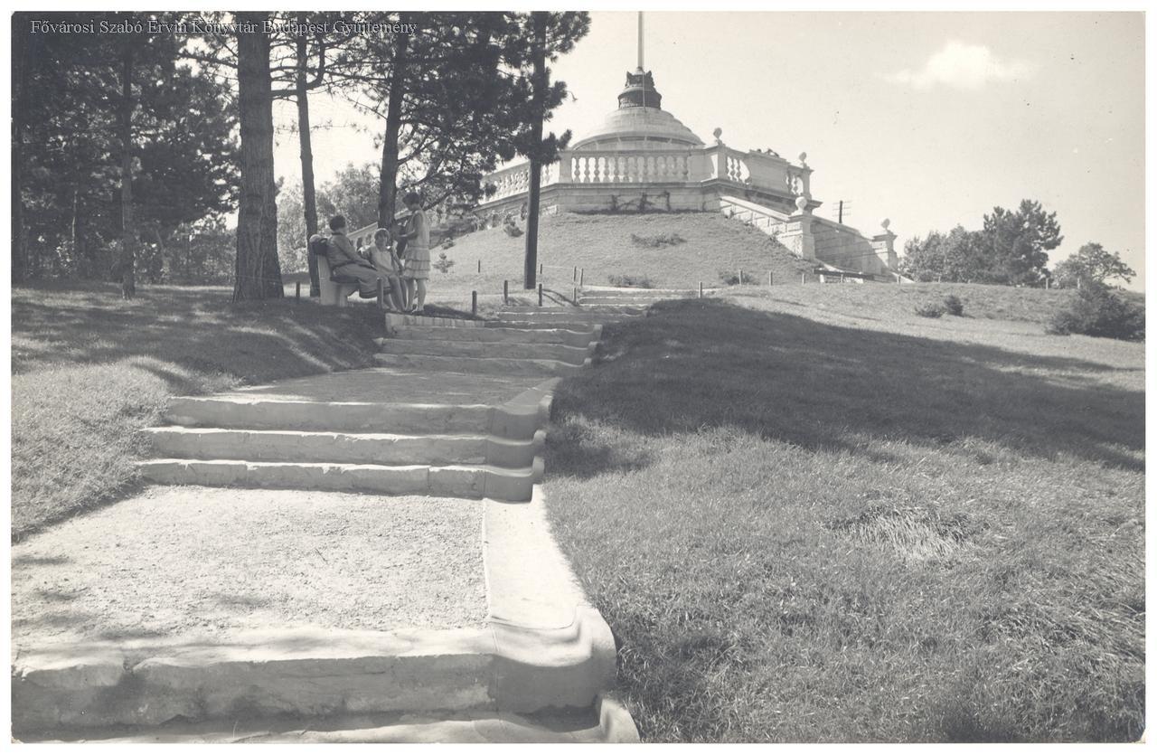 kilátó, építmény, lépcső, növényzet, ülőbútor, tájkép, 1920-as évek