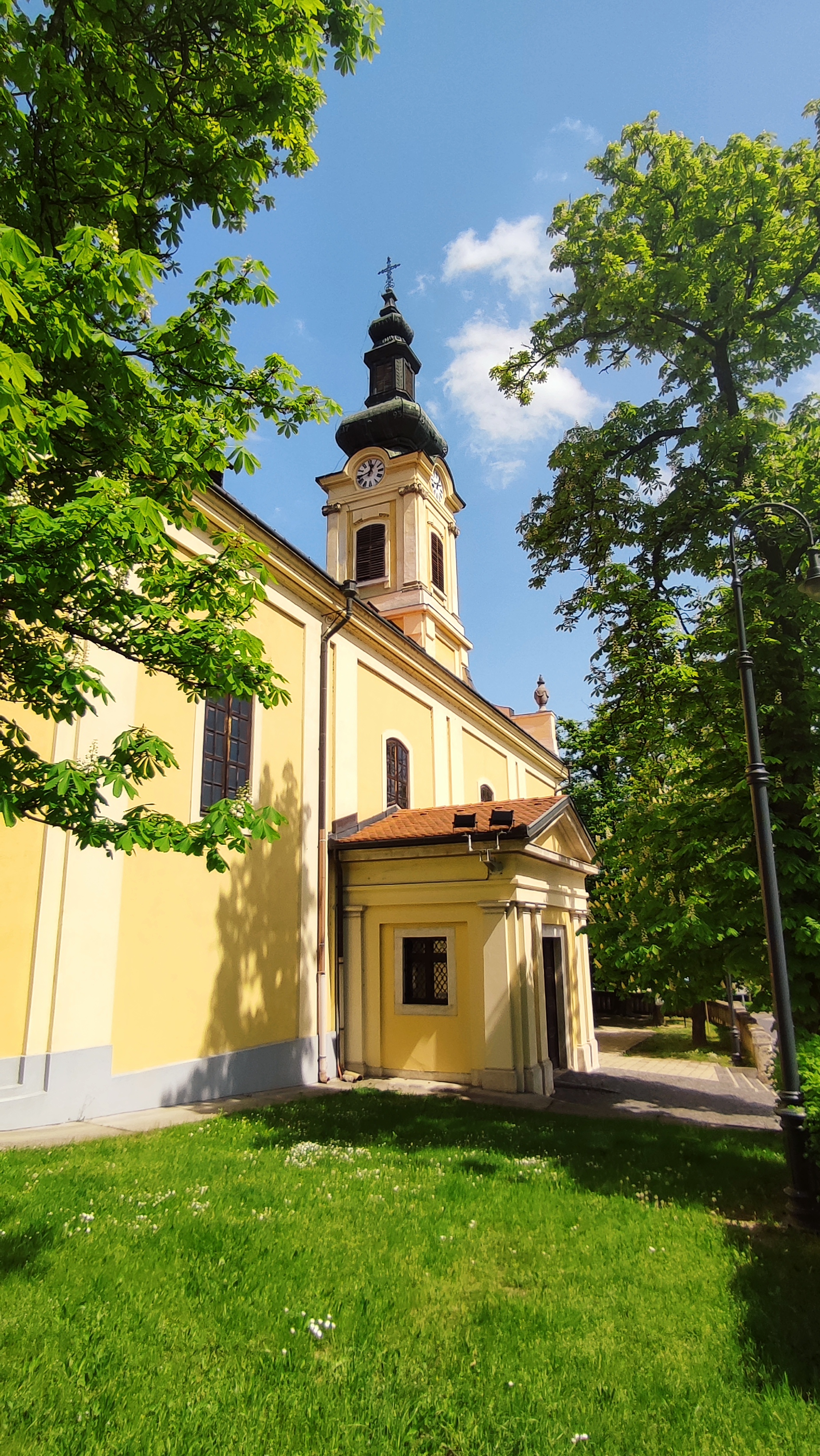 Az egykori Promontorium akkori hívei a Savoyai kastély „Segítő Szűz” tiszteletére szentelt kis kápolnájába jártak szentmisére, ám a gyorsan fejlődő település hamar kinőtte a korábban fogadalmi templomként épített Szent Péter és Pál kápolnát is, ezért az akkori kegyúr, Mária Terézia, jelentős segítségével, a kastély közelében 1753-ban letették a templom alapkövét. A kis barokk templom 1755 őszére készült el, melyet október 6-
