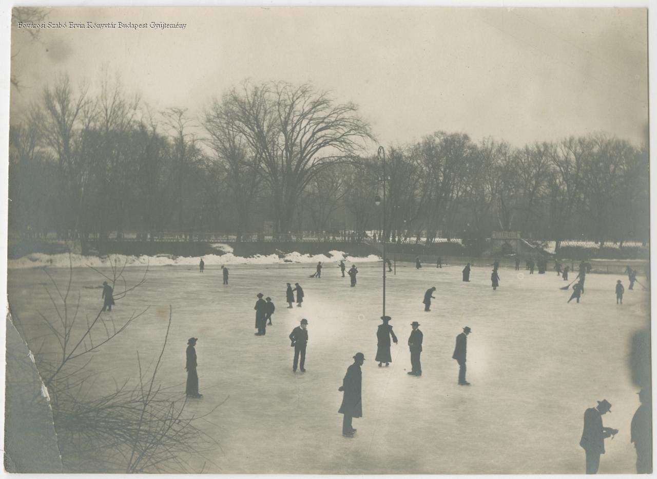 [Korcsolyázók a Városligeti tó jegén]