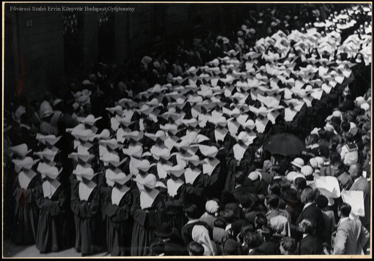 apáca (szerzetes), keresztény ünnep, nemzeti ünnep, körmenet, néptömeg, augusztus 20., 1934