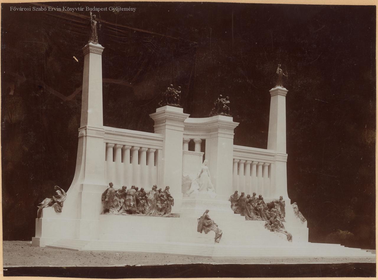 [Zala György, Bálint Zoltán és Jámbor Lajos pályatervének makettje az Erzsébet királyné emlékművére kiírt első pályázatra ]