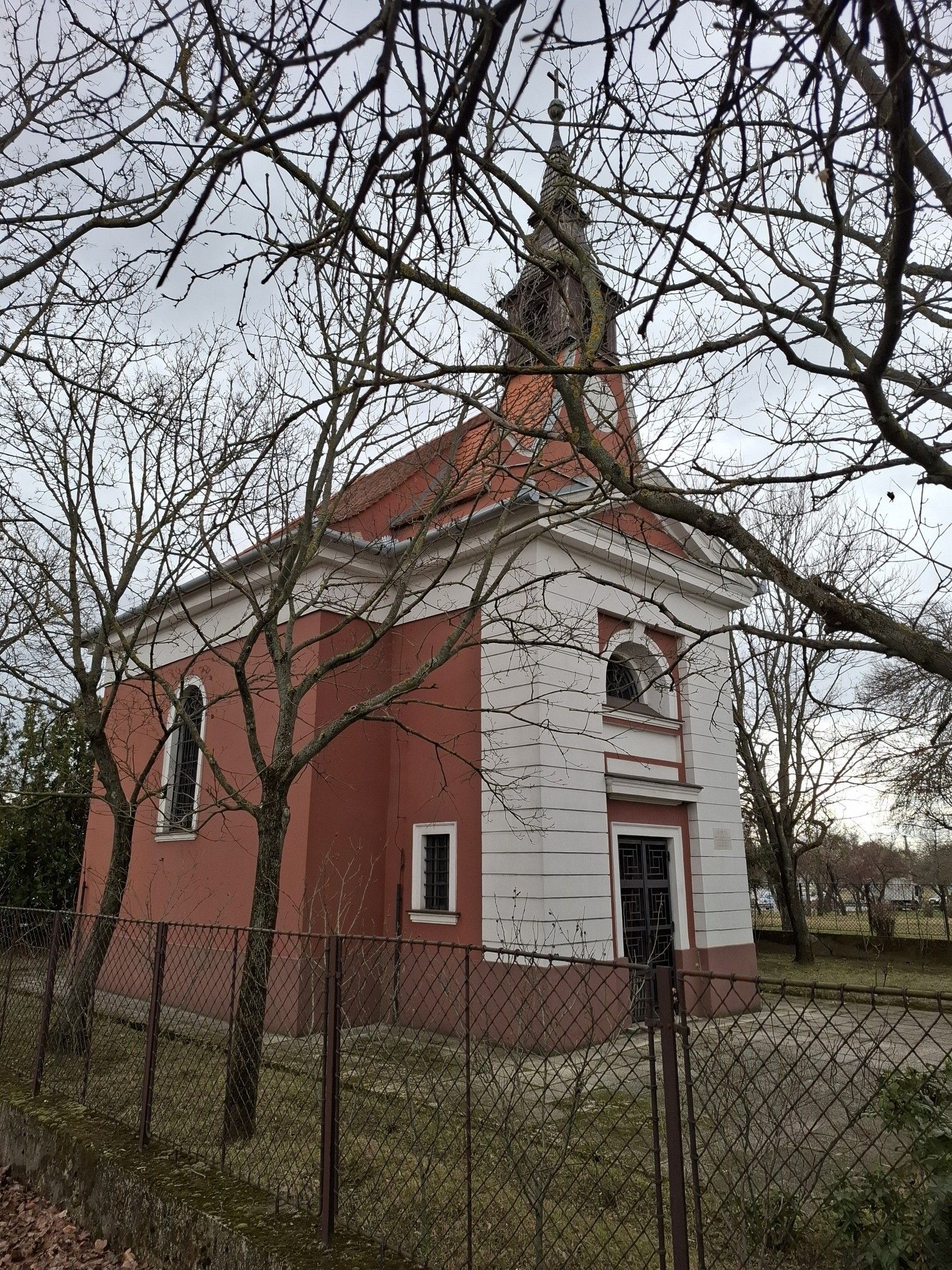 A kápolna stílusa klasszicista, félkörös záródású szentéllyel. Fatornya zsindellyel fedett, oromfalán félkörablak engedi be a fényt. Belső tere négyzet alaprajzú. A jelenlegi freskó Rády Ferenc alkotása. A szentély ablakain Szent Pétert és Szent Pált láthatjuk. A hátsó falon függő feszületet Magyar Zoltán fafaragó készítette 2001-ben.