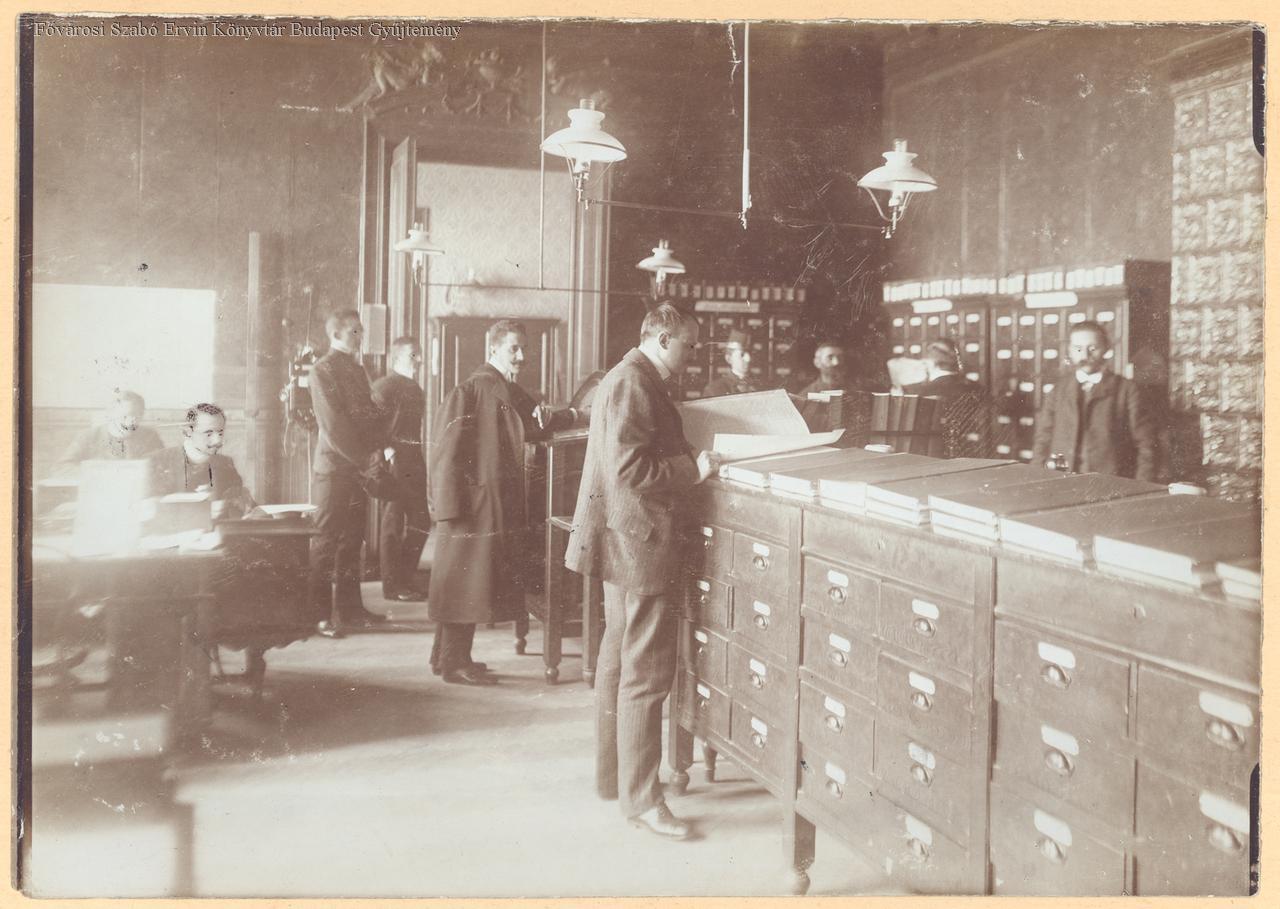 [A rendőrfőkapitányság nyomozó osztályának kartoték-szobája alkalmazottakkal]