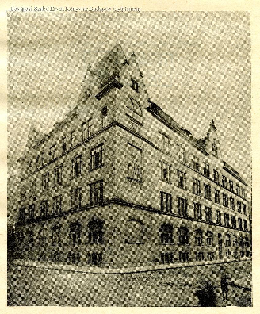 [A Budapest Székesfővárosi VII. kerületi községi polgári, kereskedelmi, ipari és háztartási leányiskola sarokhomlokzata]