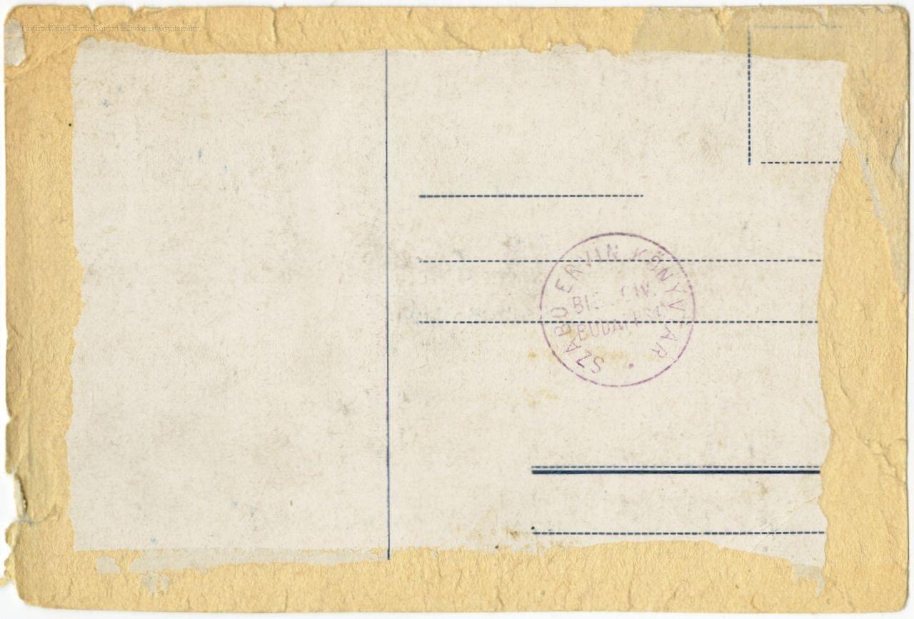 A képeslap állapota: sérült, hátoldala körberagasztva