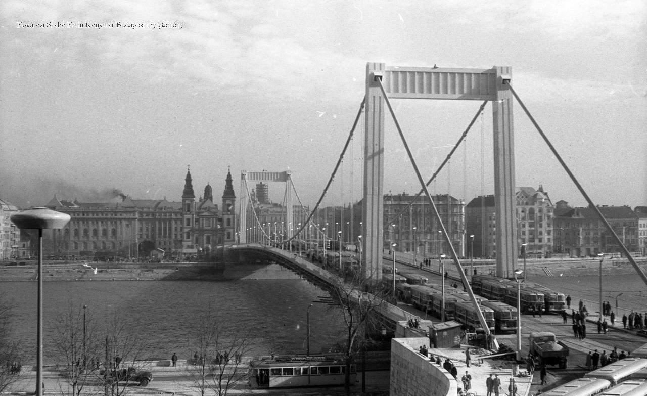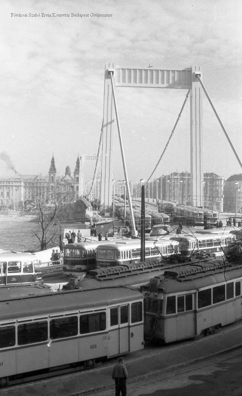 híd, ember, gépjármű, autóbusz, közúti villamos, teszt, műszaki ellenőrzés, eseménykép, 1960-as évek