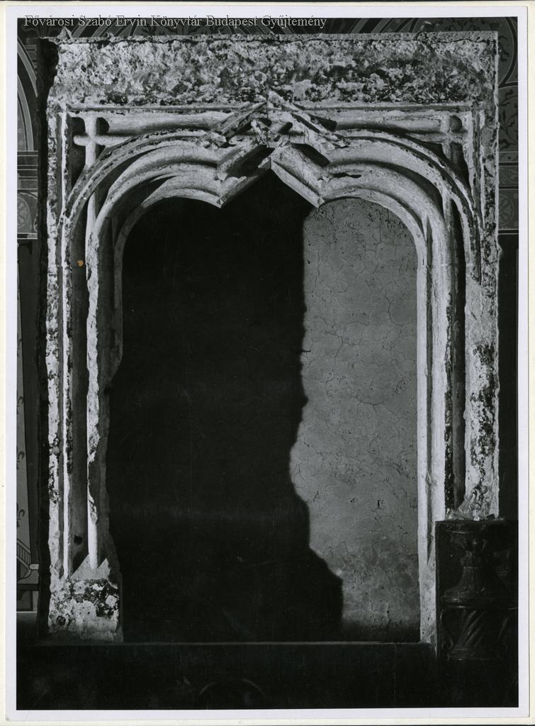 templom, katolikus egyház, belső felvétel, ablak, fal, gótika, régészeti feltárás, 15. század, 1942 körül
