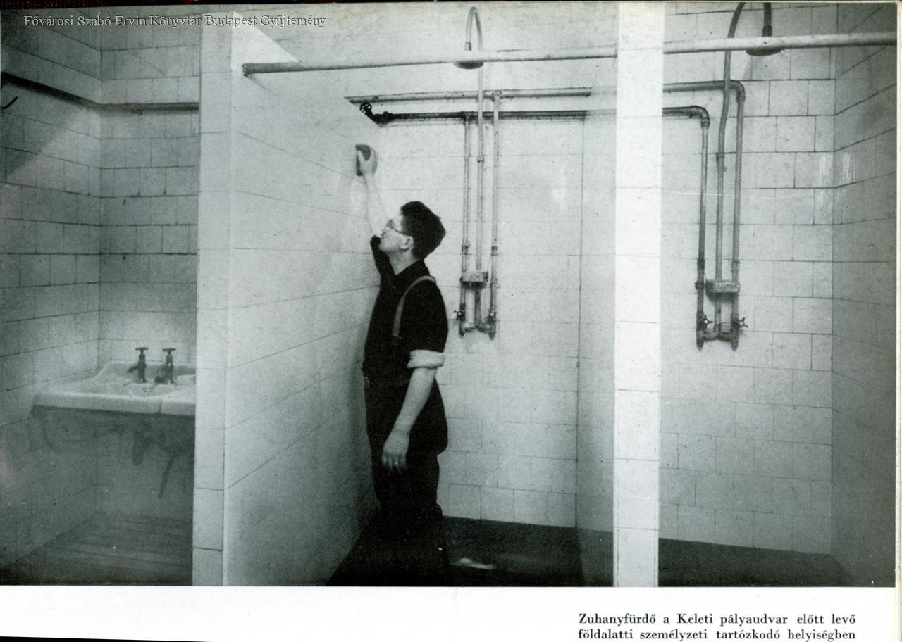 Zuhanyfürdő a Keleti pályaudvar előtt levő földalatti személyzeti tartózkodó helyiségben