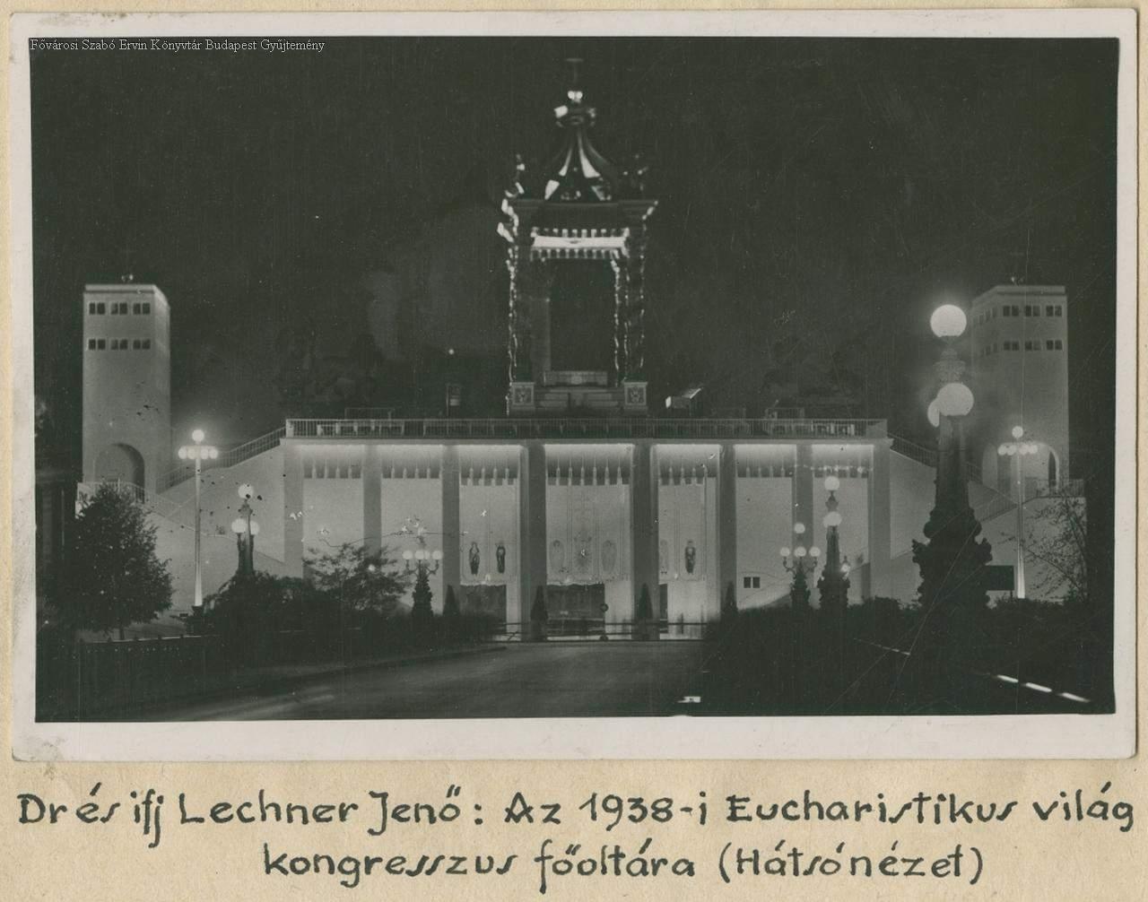 katolikus egyház, keresztény ünnep, oltár, épületfotó, este, kivilágítás, 1938