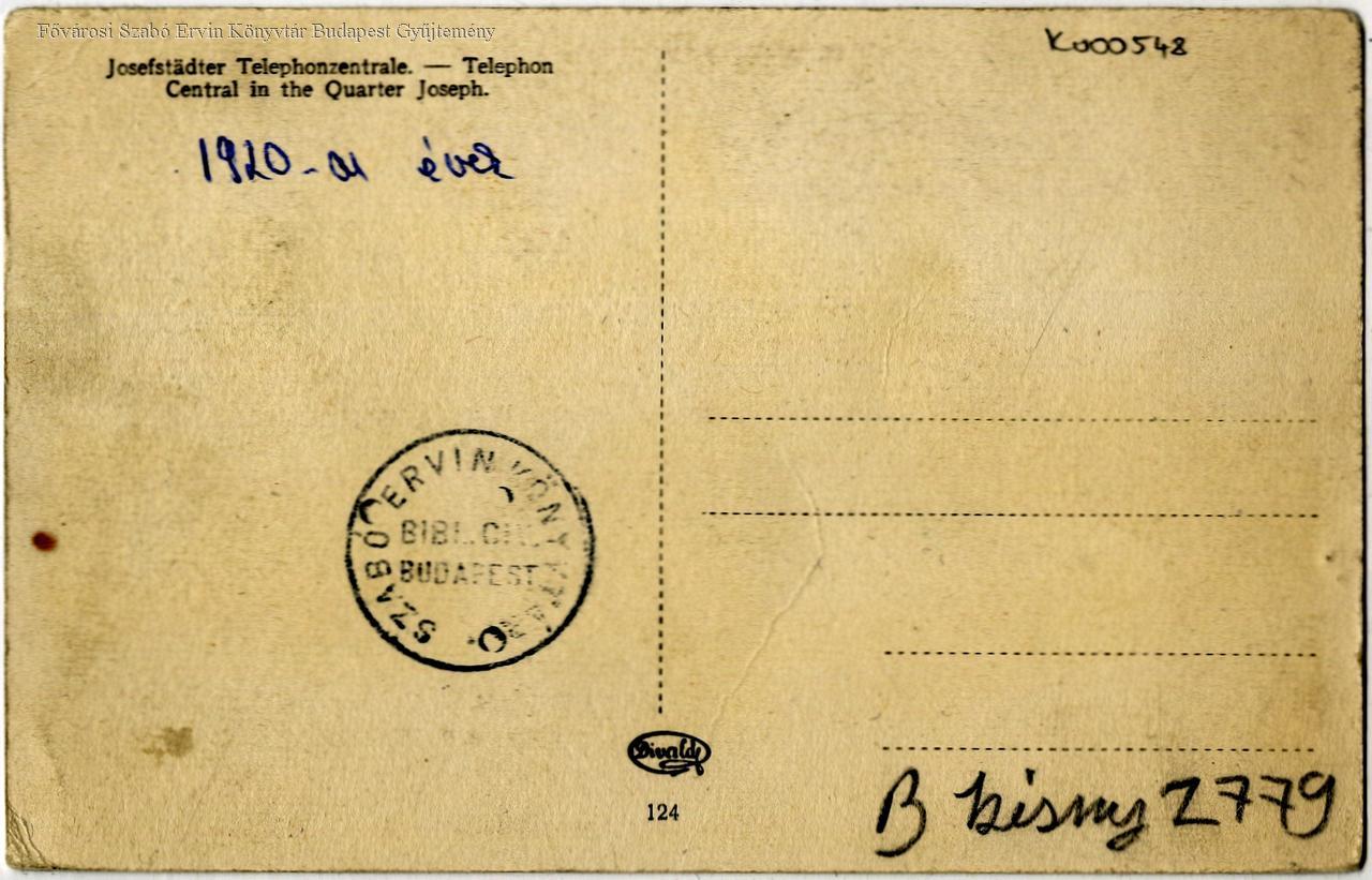 Budapest Józsefvárosi telefonközpont = Central de téléphone du quartier Joseph = Jozestädter Telephonzentrale = Telephon Central in the Quarter Joseph /