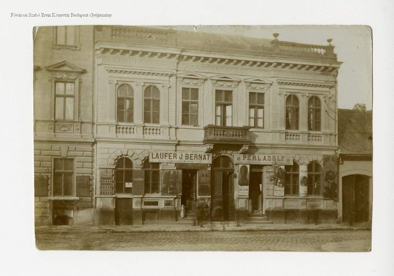 A földszinten Laufer Ignác Bernát vegyeskereskedése és lottógyűjtödéje, valamint Perl Adolf "Kékcsillaghoz" címzett zab és széna üzlete.