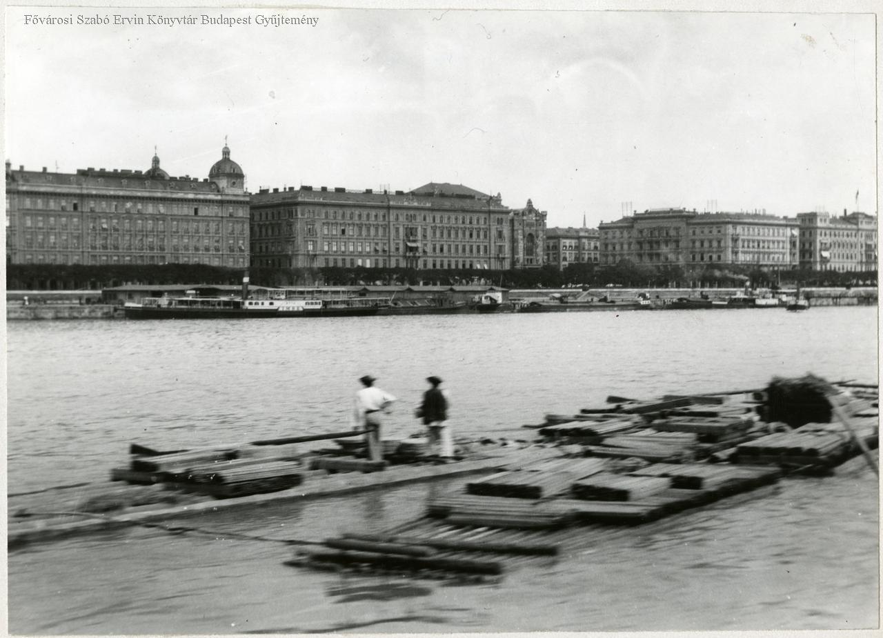 látkép, tutajozás, fakitermelés, vízi szállítás, szlovákok, hajó, 1890-es évek