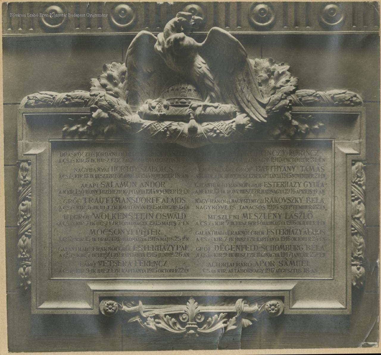 [Első világháborús hősi emléktábla a Nemzeti Kaszinó lépcsőházában]