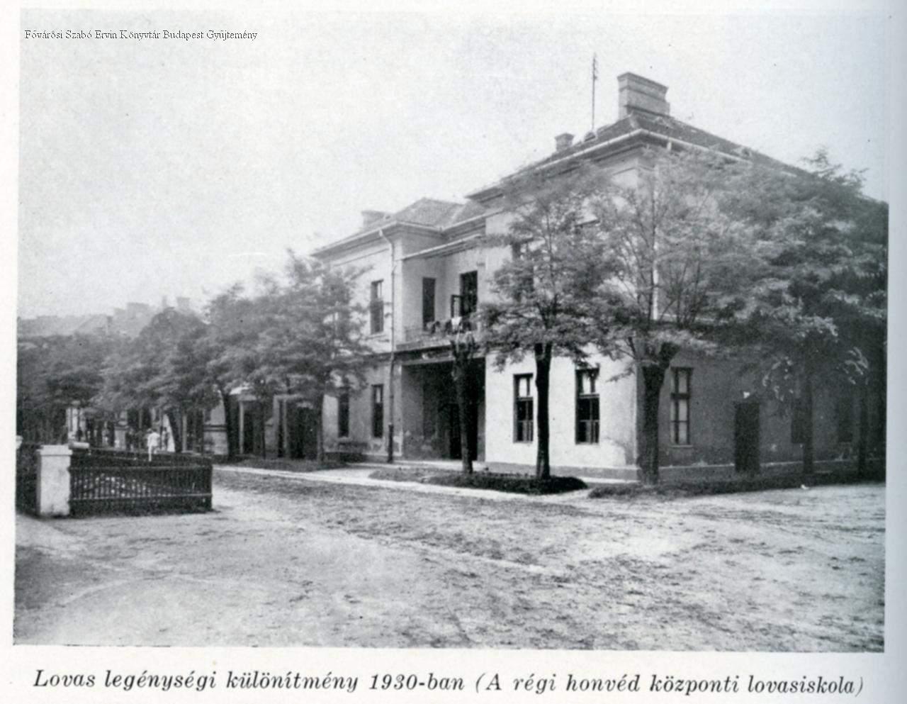 külső felvétel, katonaság, katonai iskola, katonatisztképzés, épületkép, lovassport, lovaglás, laktanya, 1930