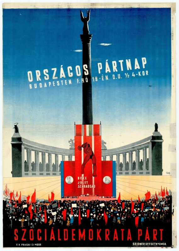 Propagandaplakát 1947-ből, a Szociáldemokrata Párt Országos Pártnapjának tartásáról Budapesten