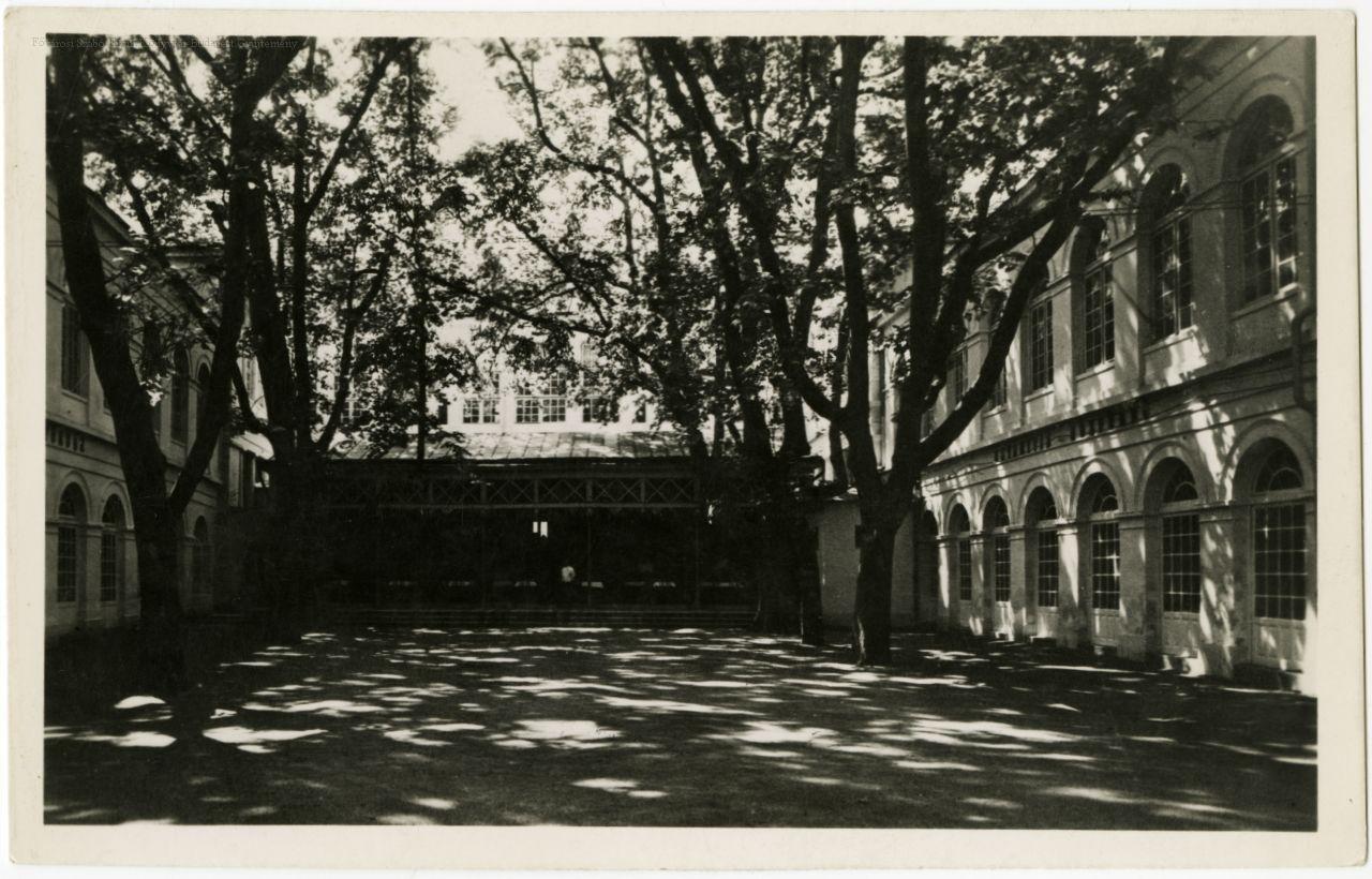 képes levelezőlap, külső felvétel, fürdő, szálloda, terasz, udvar, épület, pihenés, 1930-as évek