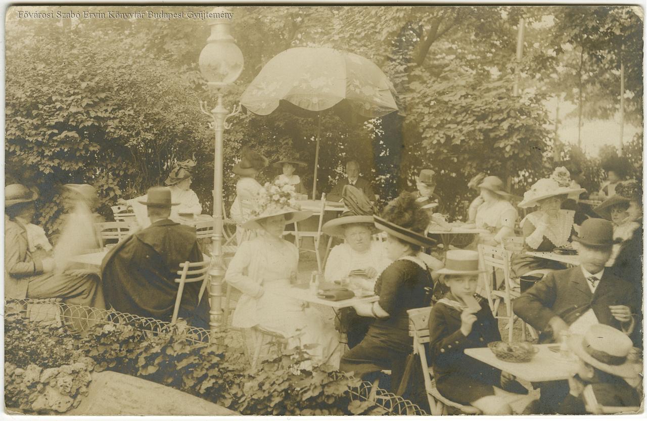 külső felvétel, étterem, kávéház, vendéglátás, asztal, lámpa, támlásszék, fa, férfi, nő, gyermek, kerthelyiség, napernyő