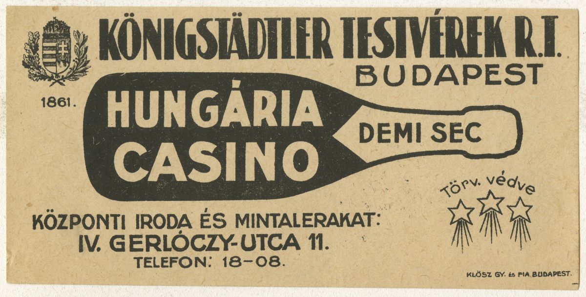 ital, alkohol, pezsgő, 1861, védjegy, reklámnyomtatvány, kisnyomtatvány, aprónyomtatvány, számolócédula