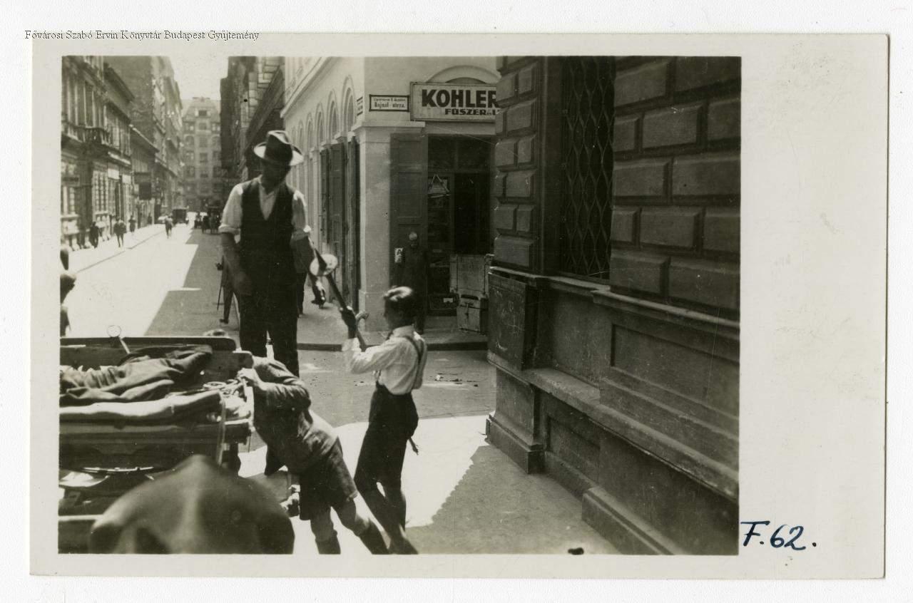 [Életkép a Hajnal (ma Nagysándor József) és Vadász utca sarkán]