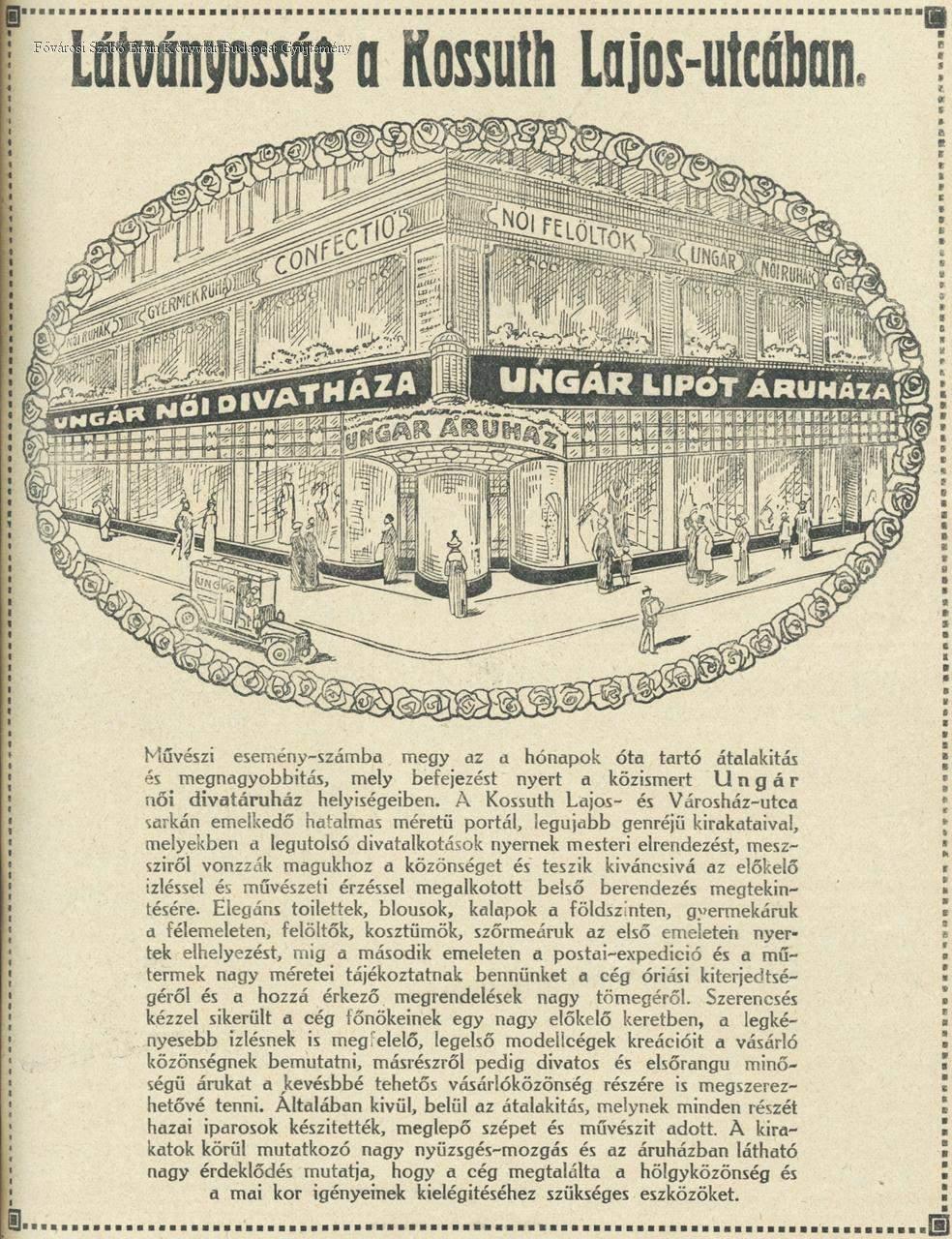 áruház, üzlet, női ruházat, divatáru, kirakat, cégtábla, homlokzat, külső felvétel, 1913