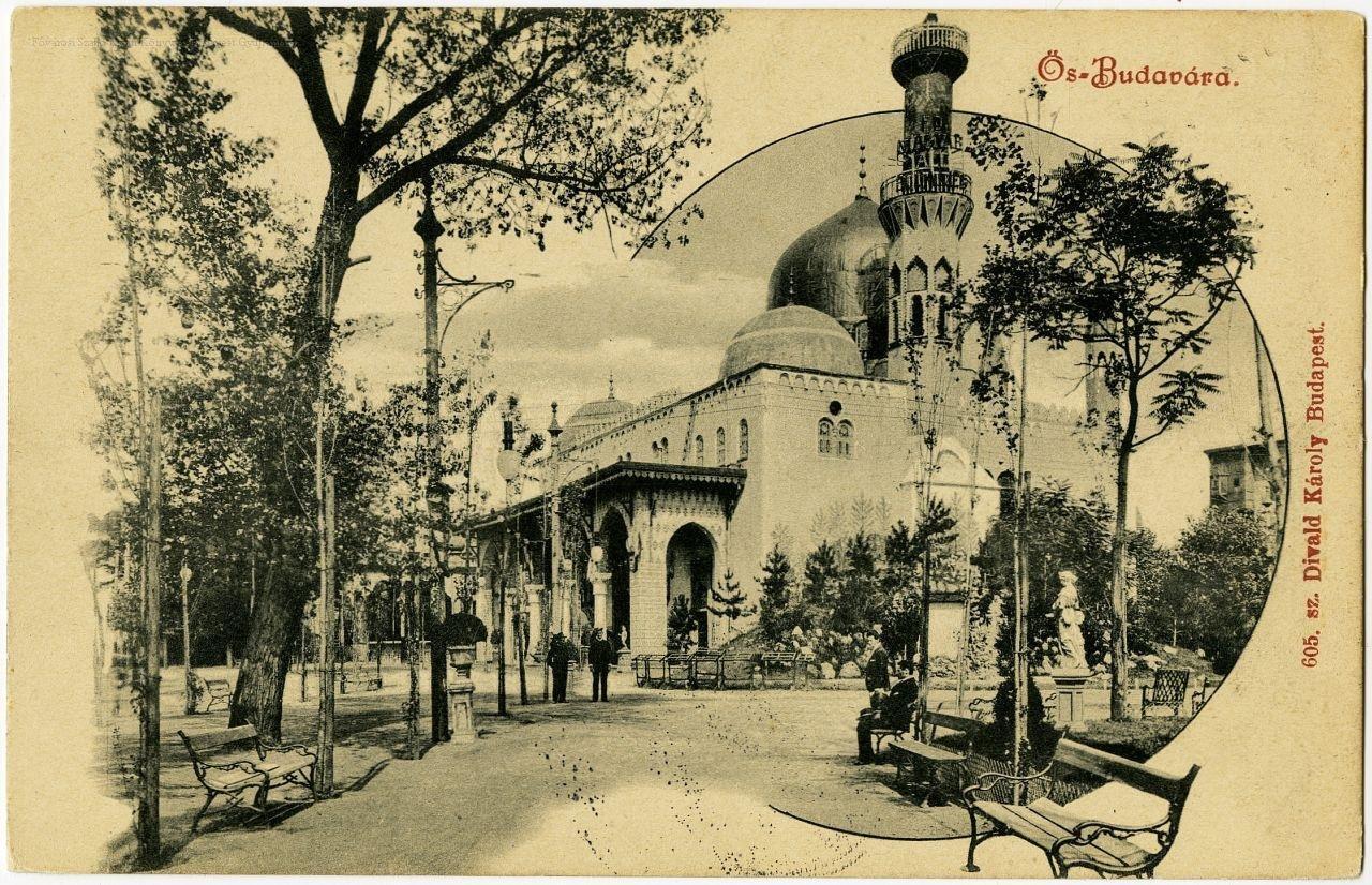 szórakozóhely, mecset, park, szobor, növény, kiállítási épület, épületkép, turizmus, külső felvétel, képes levelezőlap, 1890-as évek, 1900-as évek