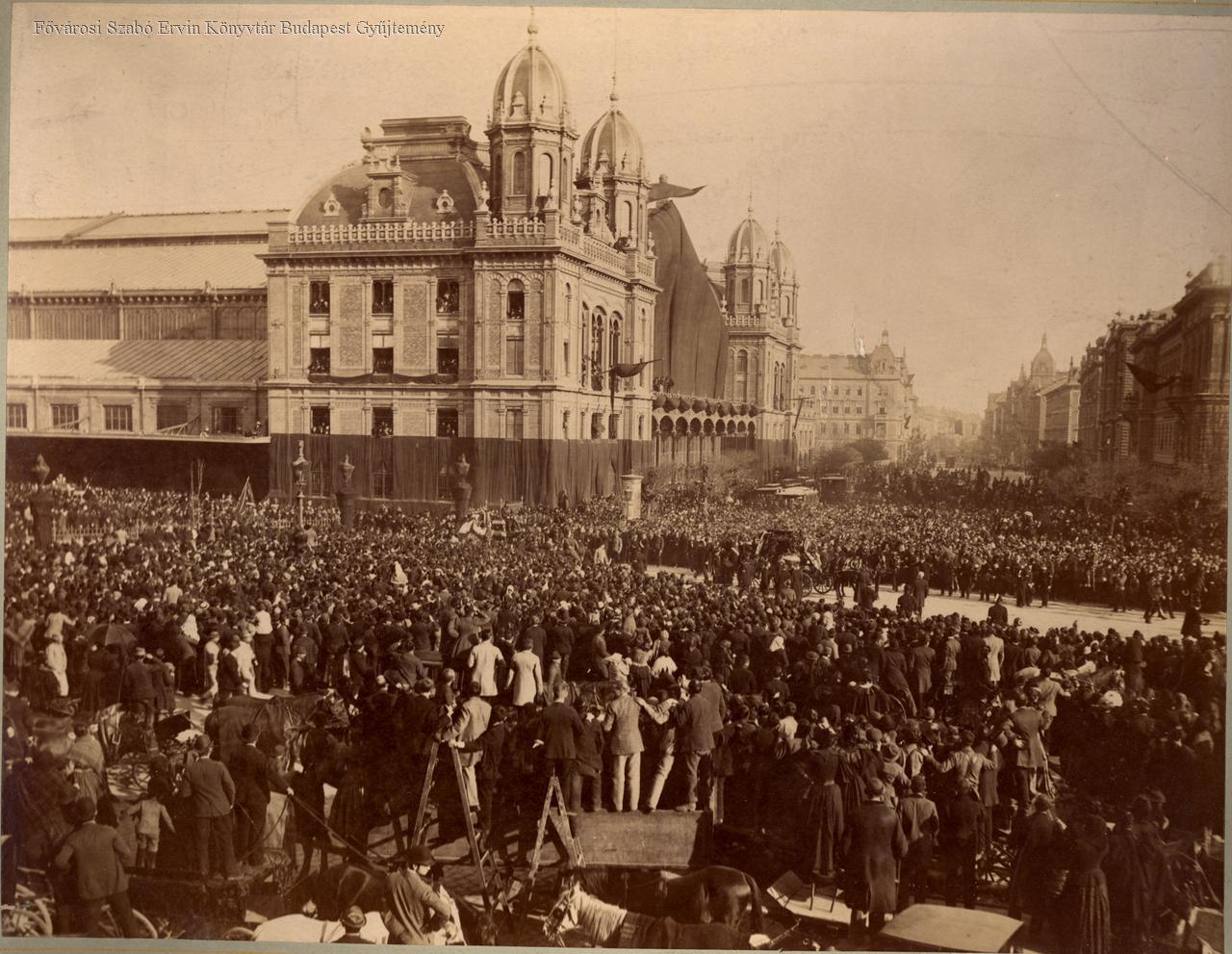 [Kossuth Lajos koporsóját várják a Nyugati pályaudvarnál, 1894. március 30]