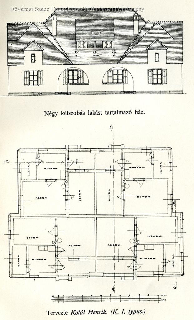 Négy kétszobás lakást tartalmazó ház, tervezte Kotál Henrik (K. V. typus) [A kispesti Állami Munkástelep lakóházai]