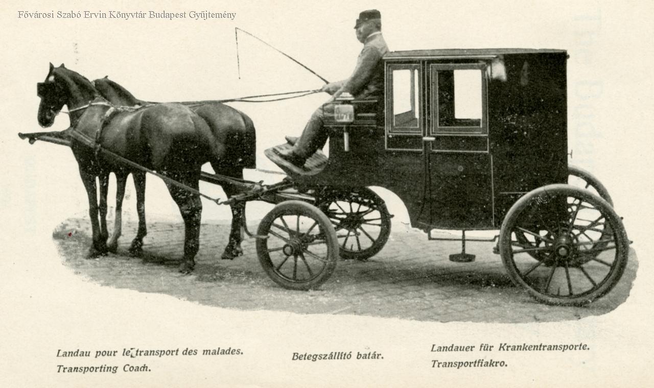 Betegszállító batár Landau pour le transport des malades = Transporting coach = Landauer für Krankentransporte = Transportfiakro