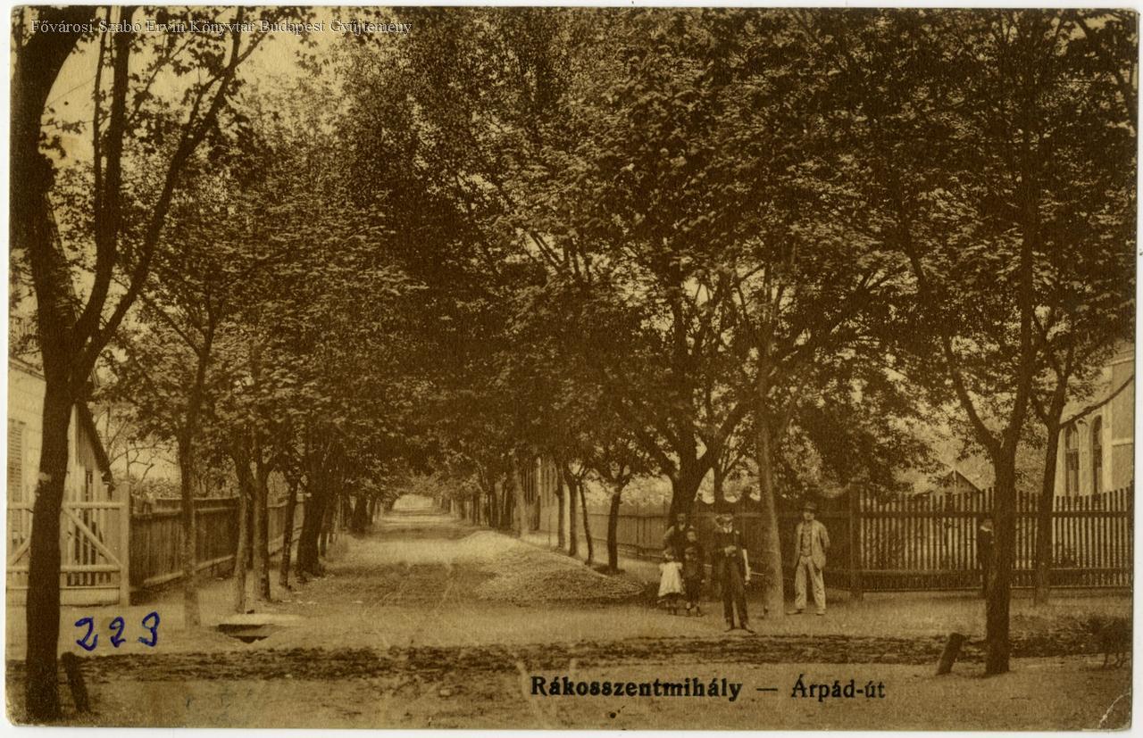 képes levelezőlap, utcakép, földút, fa, kerítés, ember, 1914-1918