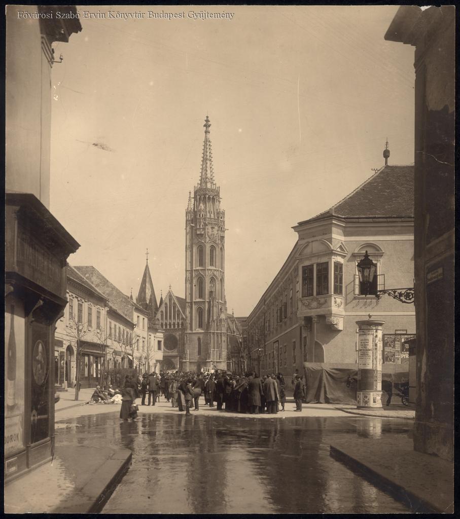 Szemben a Mátyás templom. Mozgalmas piaci élet
