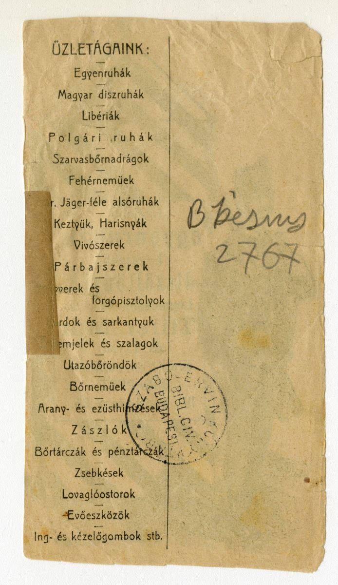 egyenruha, díszruha, alsóruházat, felsőruházat, kesztyű, harisnya, vívás, párbaj, fegyver, pisztoly, kard, sarkantyú, szalag, bőrdíszmű, bőrönd, arany, ezüst, hímzés, zászló, tárca, kés, ostor, evőeszköz, gomb, reklámnyomtatvány, kisnyomtatvány, aprónyomtatvány, számolócédula