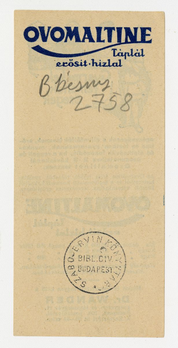 ital, maláta, kakaópor, reklámnyomtatvány, kisnyomtatvány, aprónyomtatvány, számolócédula