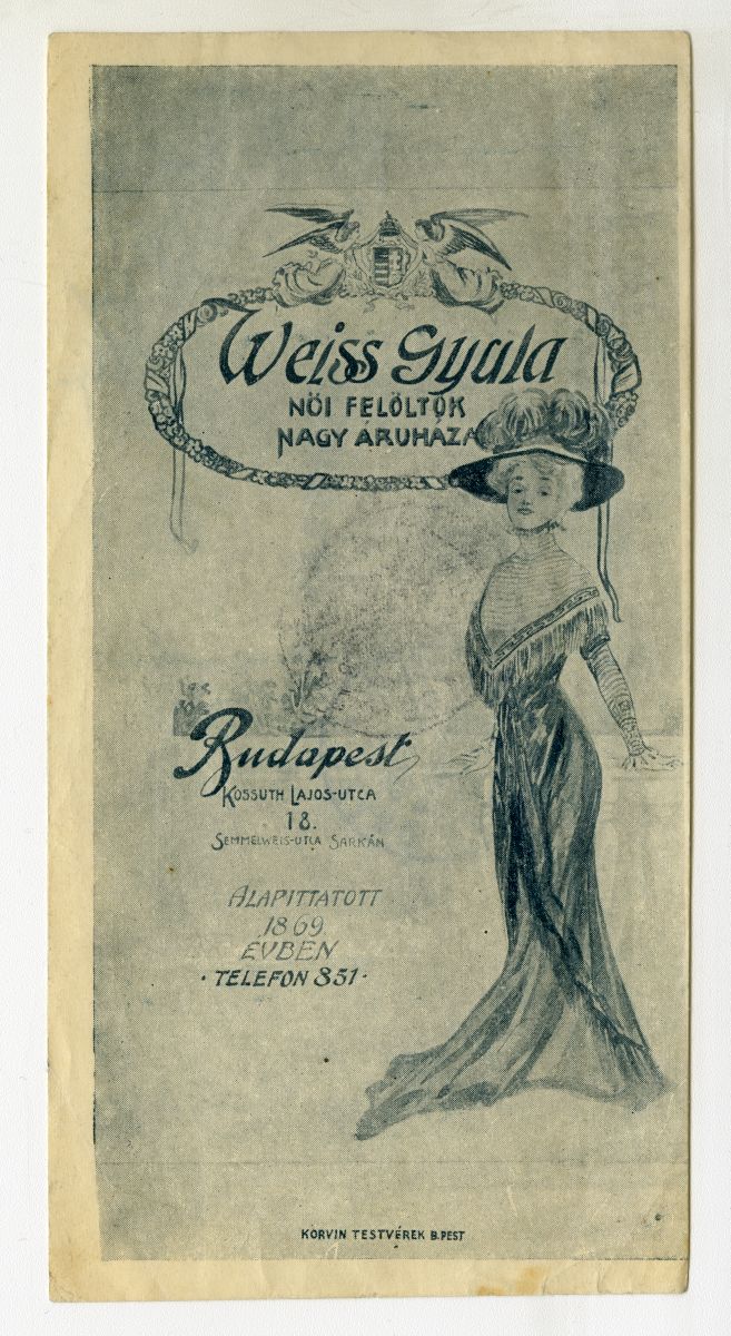 Cégnév:Weiss Gyula női felöltök nagy áruháza