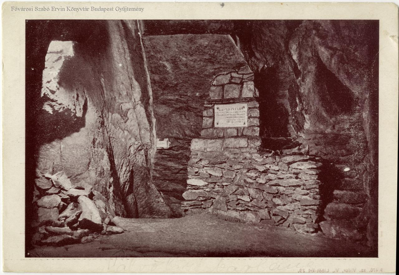 képes levelezőlap, belső felvétel, cseppkőbarlang, emléktábla, 1920-1940