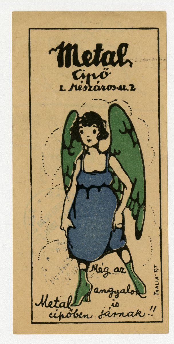 női cipő, lábbeli, cipész, angyal, üzlet, reklámnyomtatvány, kisnyomtatvány, aprónyomtatvány, számolócédula