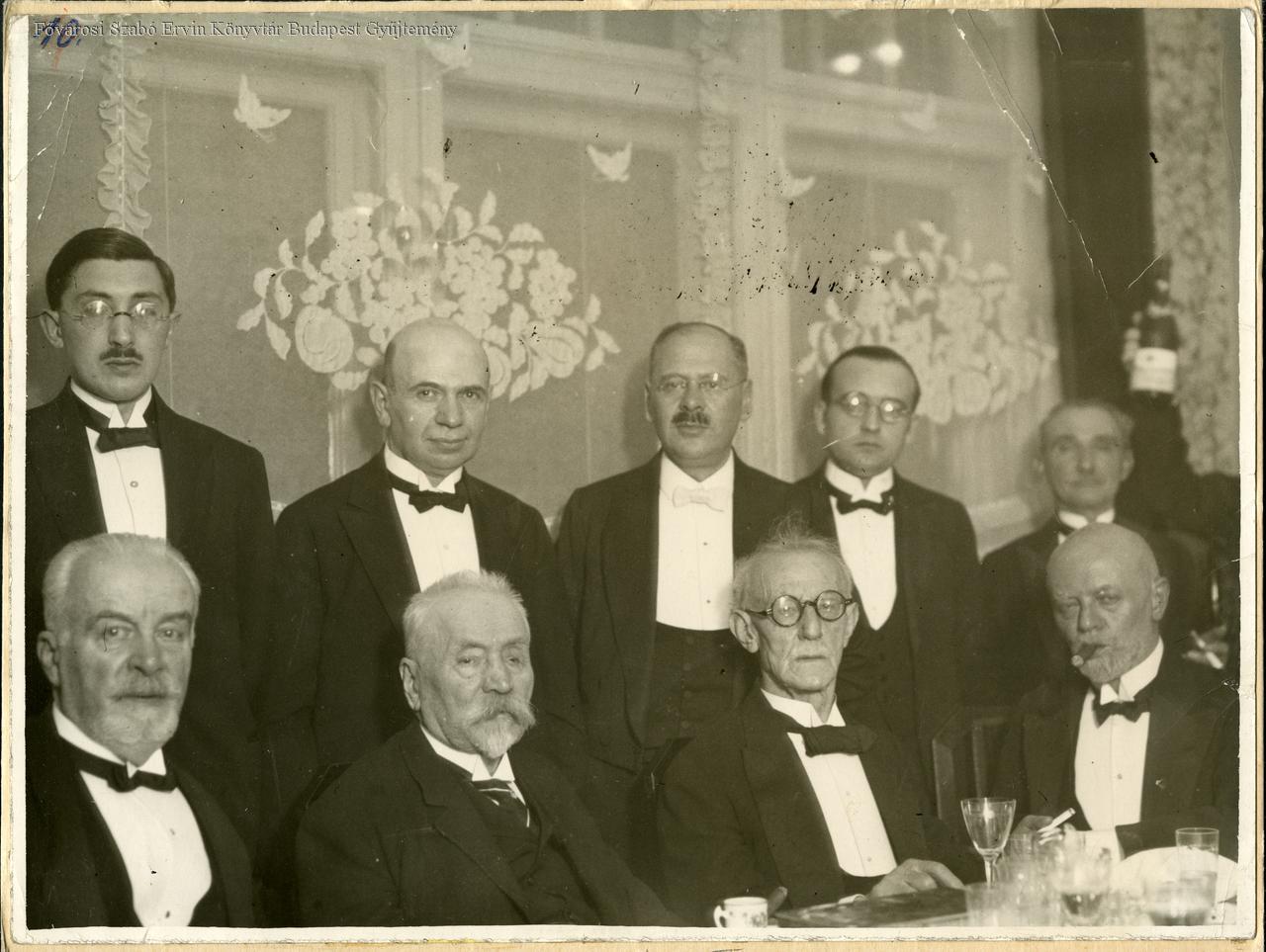 Ülő sor balról jobbra: Bókay János egyetemi tanár, Rákosi Jenő író, az ünnepelt, Alapi Henrik egyetemi tanár. Álló sor: Frank Miklós főorvos, Fischer Albert egyetemi tanár, Fodor Oszkár főigazgató, Zafiry Zénó tisztiorvos, Vasz Dezső ügyvéd
