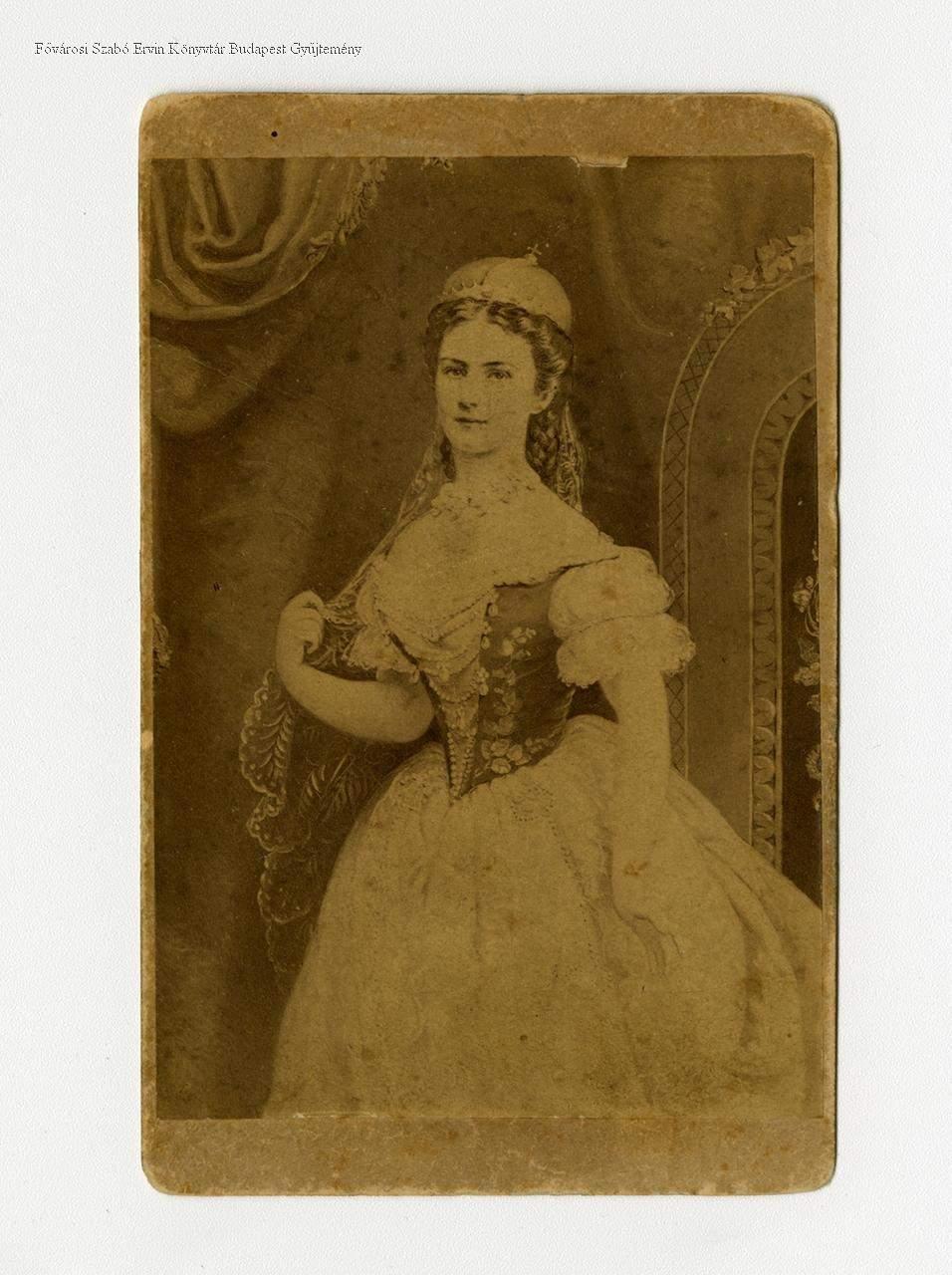 műtermi portré, háromnegyed-alakos kép, reprodukció, uralkodócsalád, királyné, nő, koronázás, díszruha, 1867