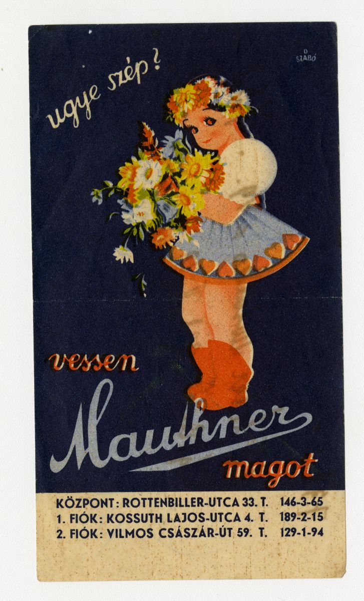 vetőmag, vetés, növénytermesztés, virág, gyermek, népiesség, népviselet, reklámnyomtatvány, kisnyomtatvány, aprónyomtatvány, számolócédula